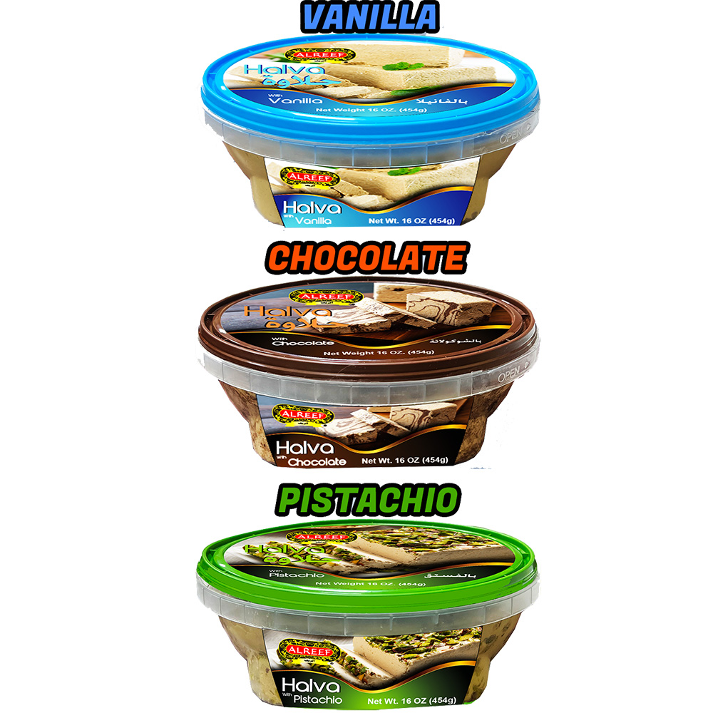Chocolate Halva, Pistachio Halva, Vanilla Halva
