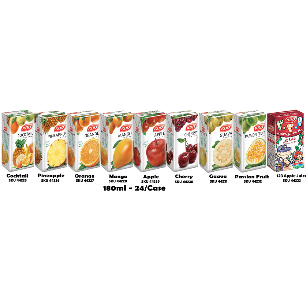 123 Apple Juice, Apple, Cherry, Cocktail, Guava, Mango, Orange, Passionfruit, Pineapple