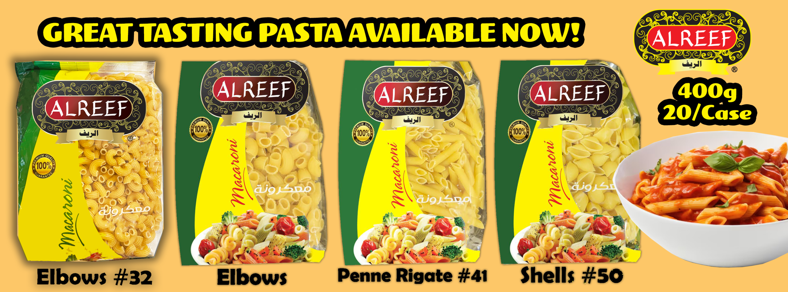Elbows #32, Fusili #34, Penne Rigate #41, Rigatoni #24, Shells #50, Trottolino #27